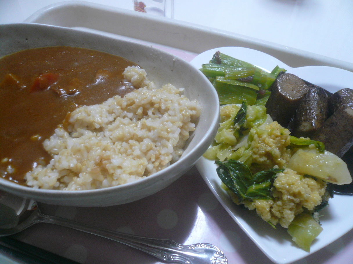 グルテンカレーと蕪の餅きび和え、ごぼうの梅酢煮。