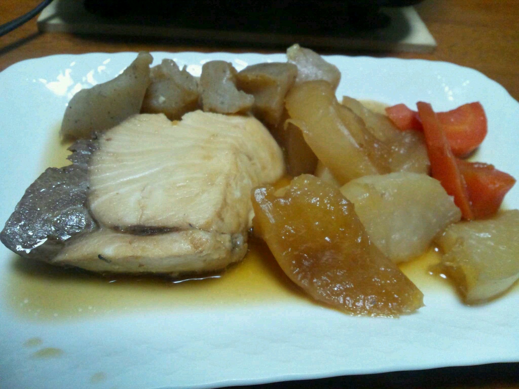 夜だったからか、スーパーの鰤が半額近くになっていたので。