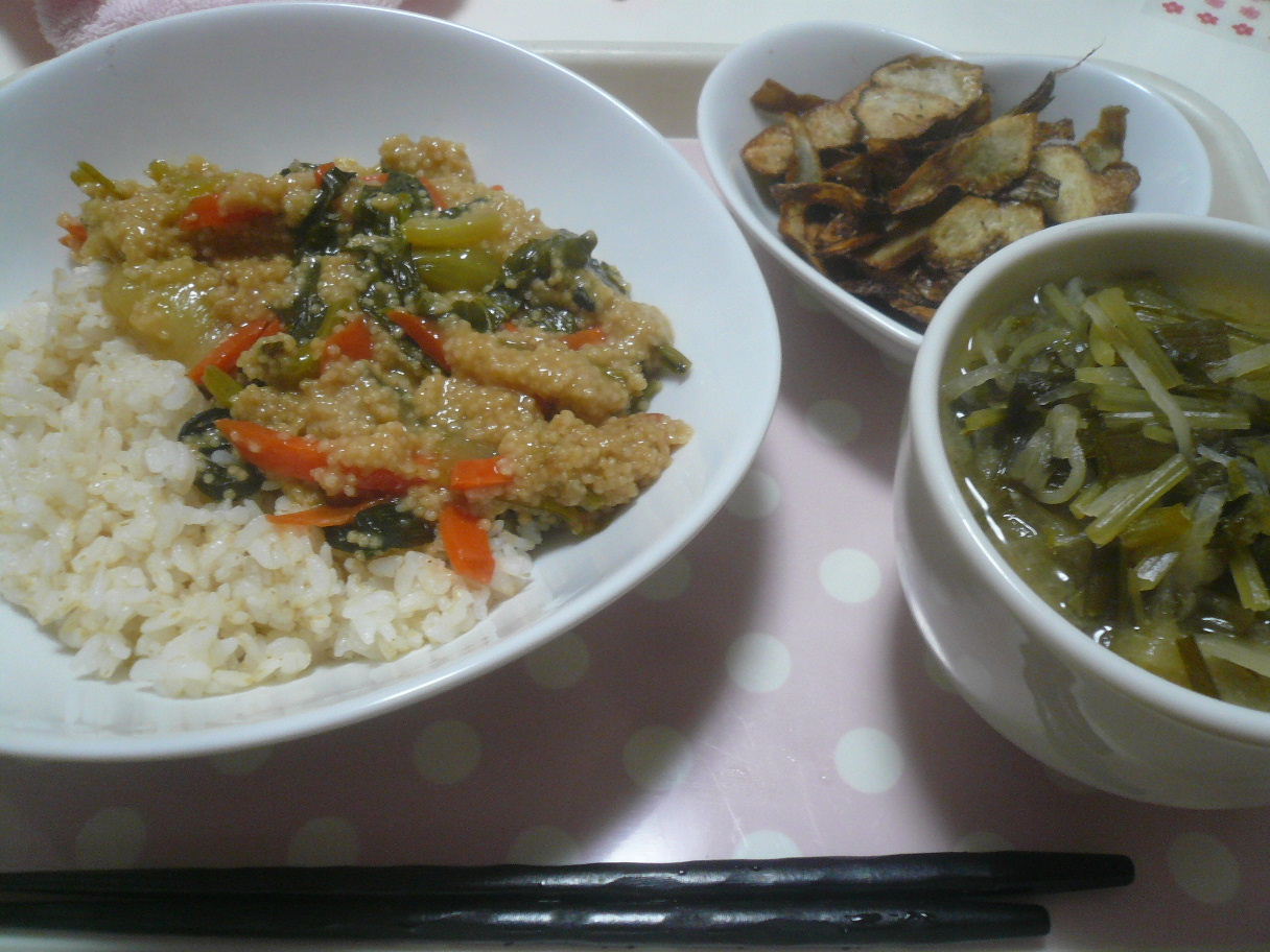 餅粟という雑穀を使った丼を相方が作ってくれました。