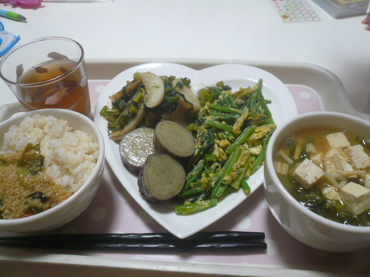 昨日の夕飯はヒエを使った雑穀和え。