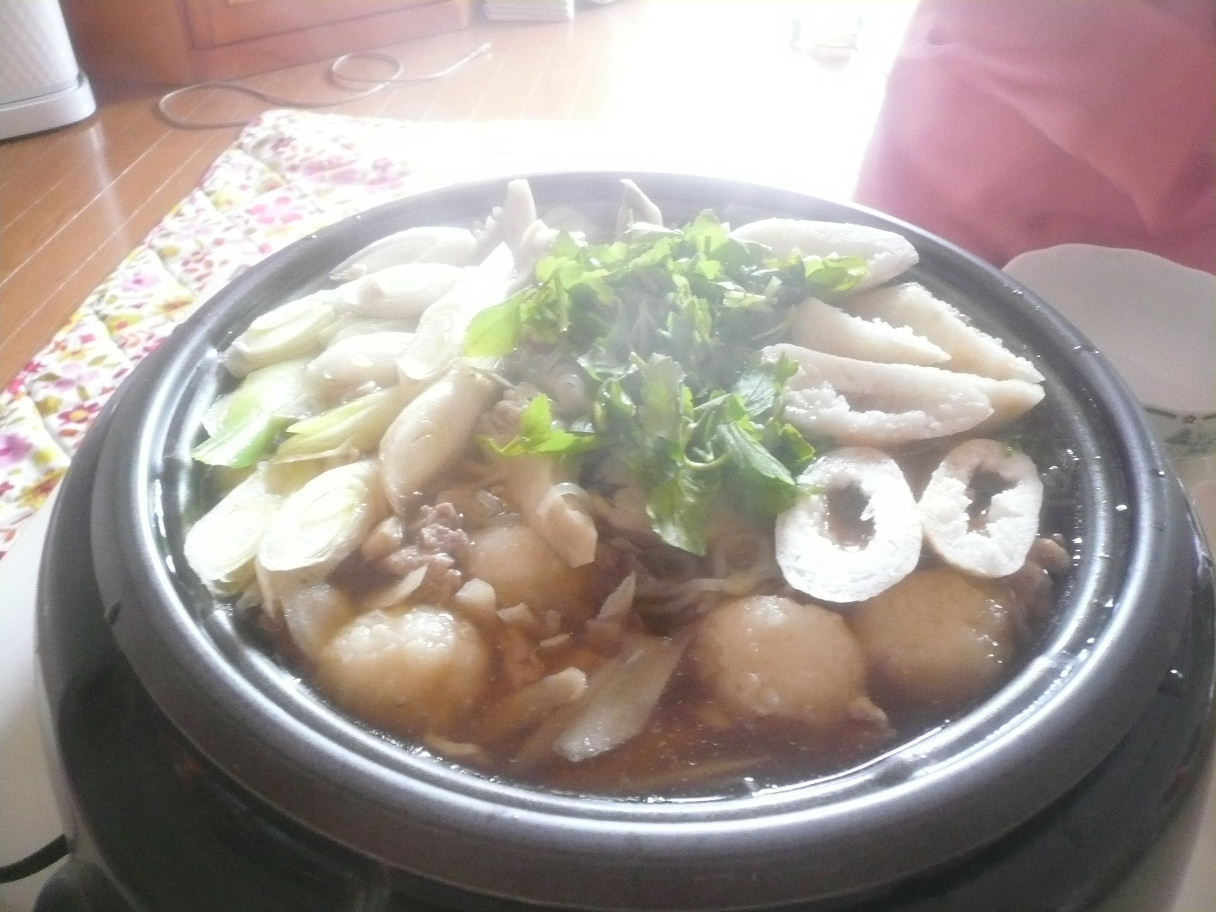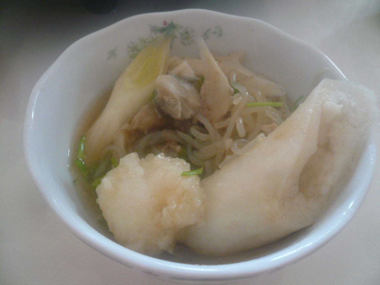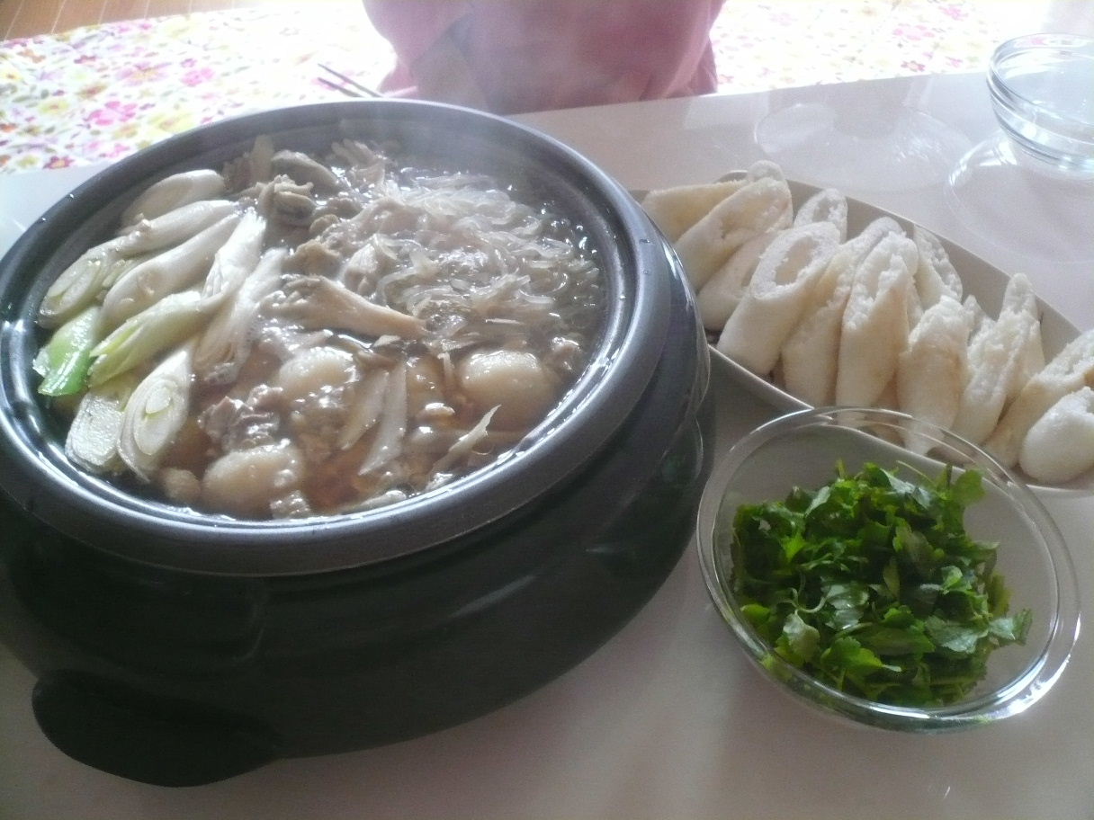 具材は、きりたんぽ・だだこ餅(丸いきりたんぽ?)・ごぼう・鶏・セリ・出汁・ネギかな?