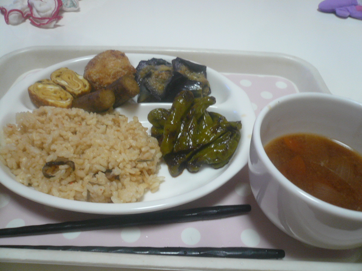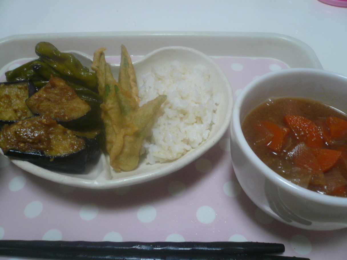 カボチャのコロッケも旨かったし、大好物のシシトウも旨かった。