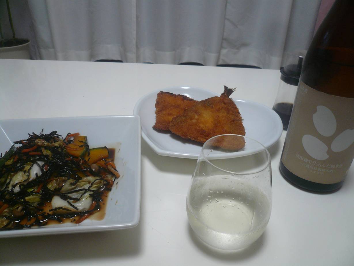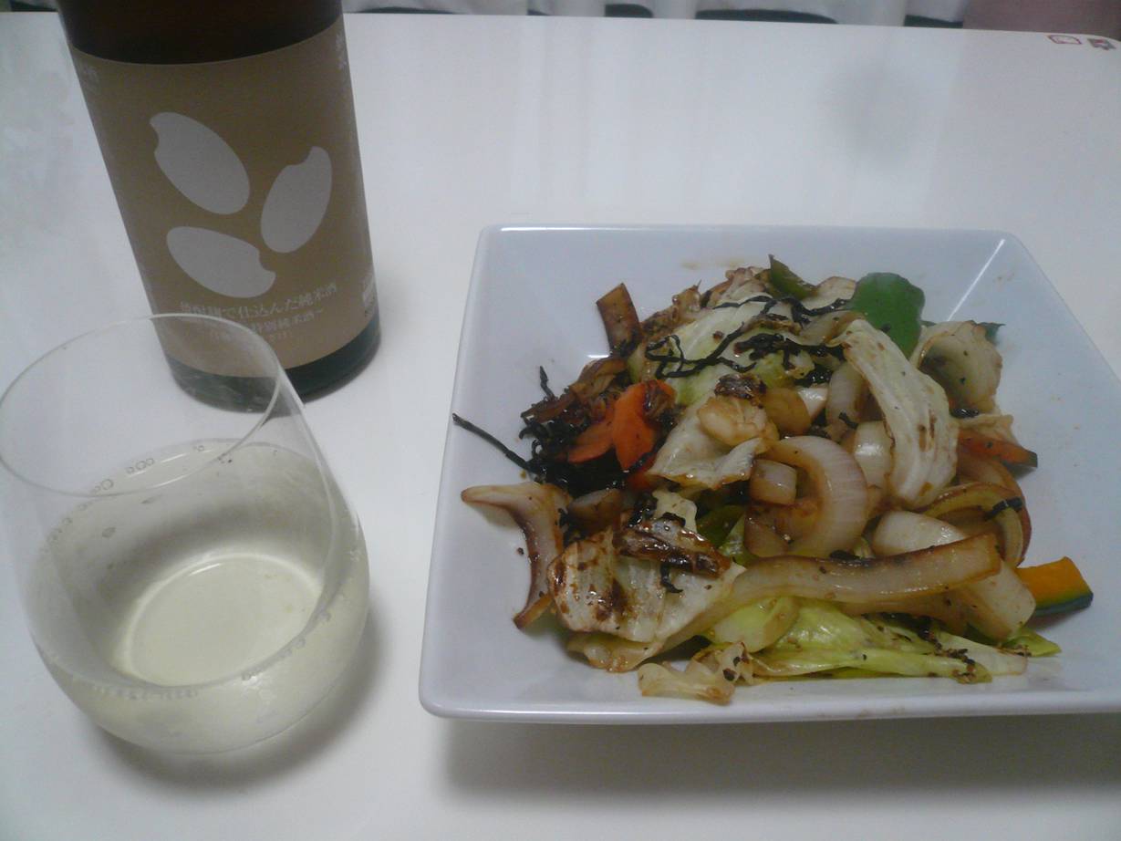 野菜炒めとお酒。