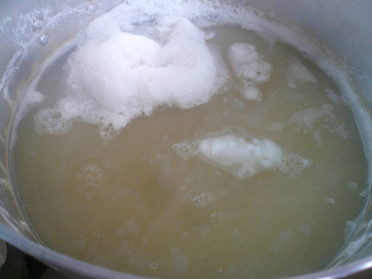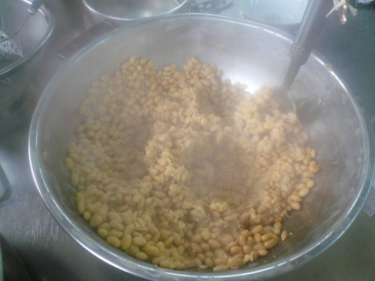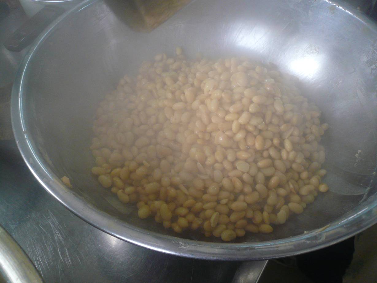 この茹で汁は大豆を潰した時に伸ばす時に使うので気をつけて。