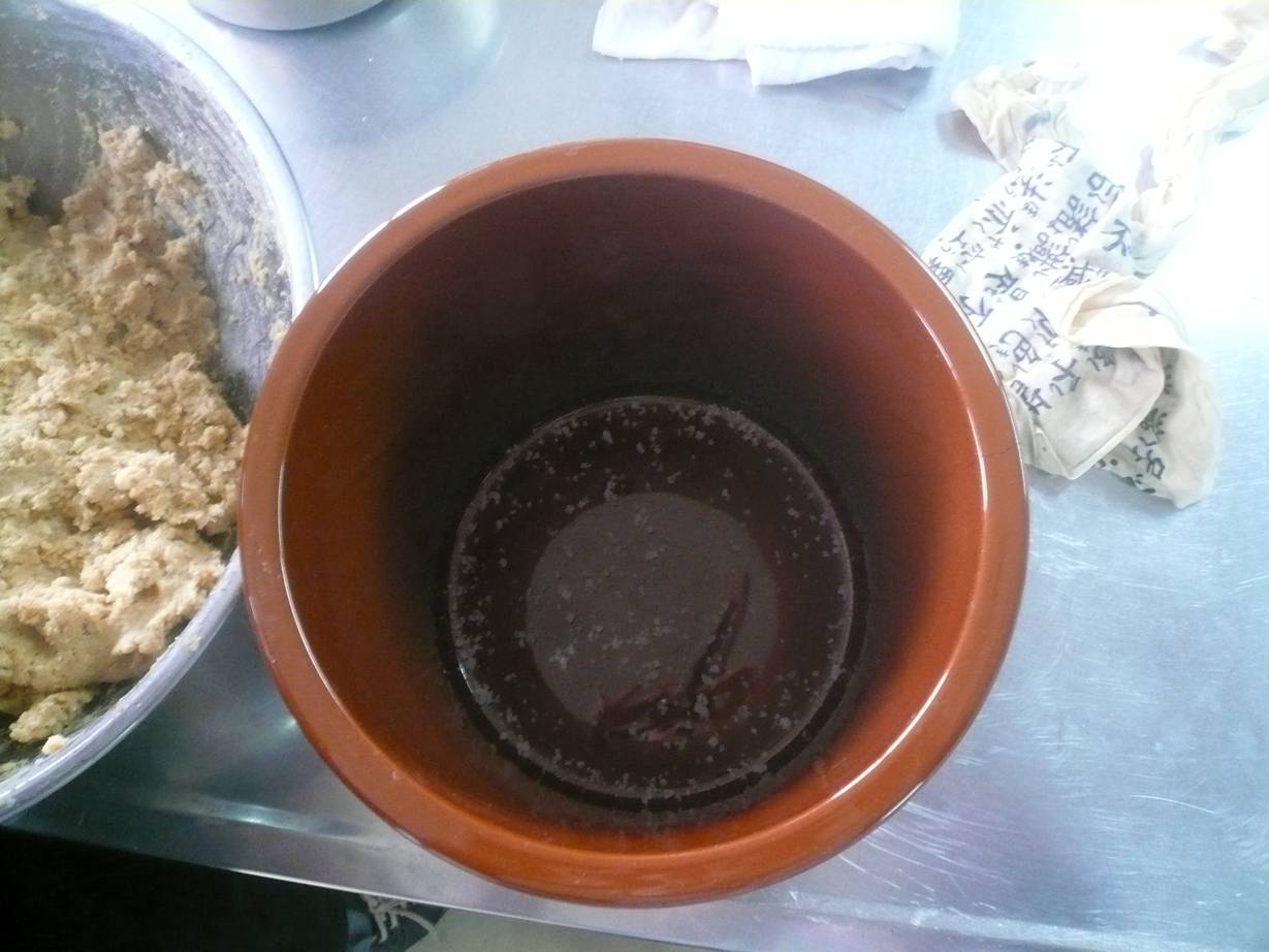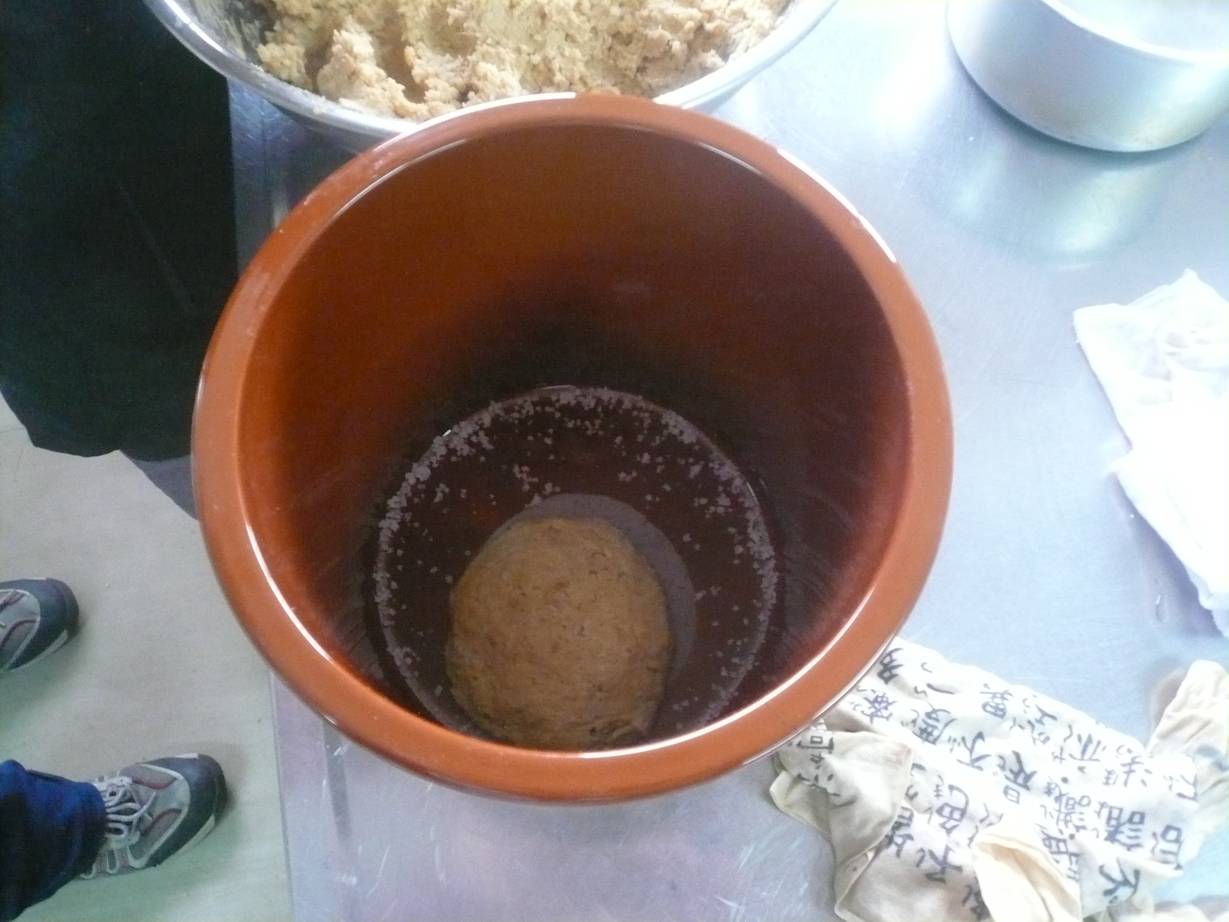叩きつけて味噌の空気を抜くらしい。