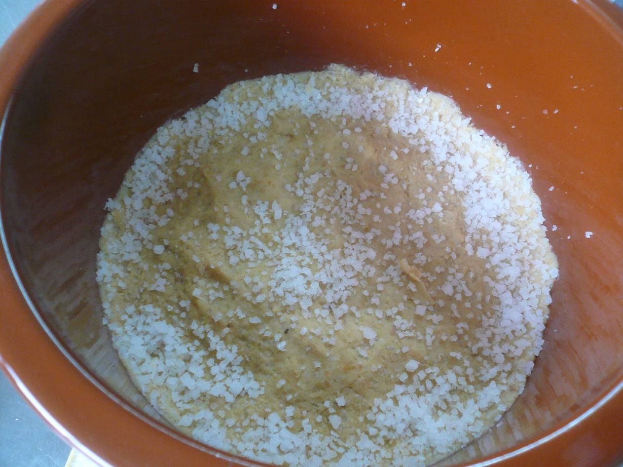 このまま荒塩で蓋をするようにカビ予防。