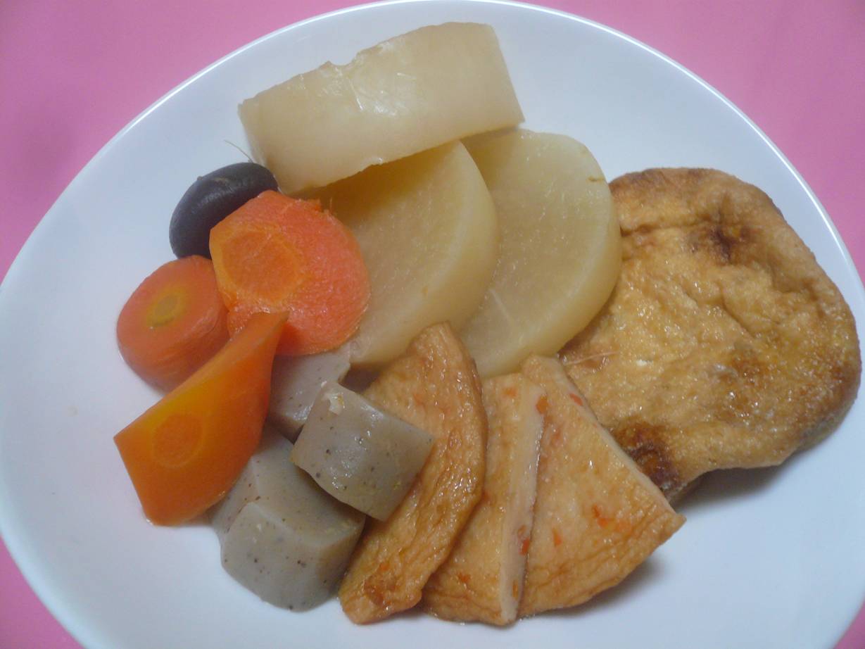 そして調理は蓮根と人参のさつま揚げや人参の蒸しものを食べた。