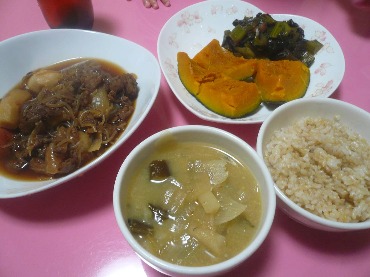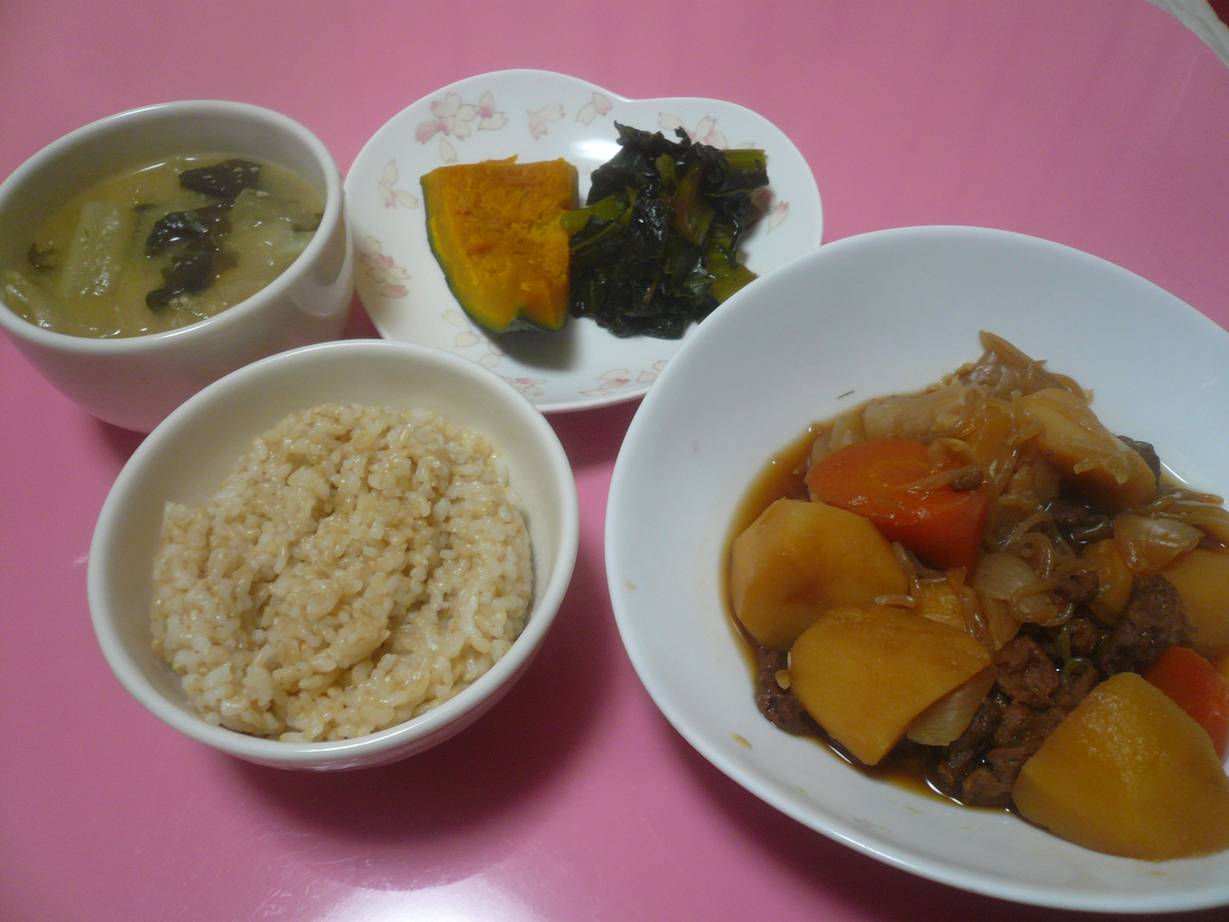 夕飯は寒いので温かい肉じゃがと味噌汁。