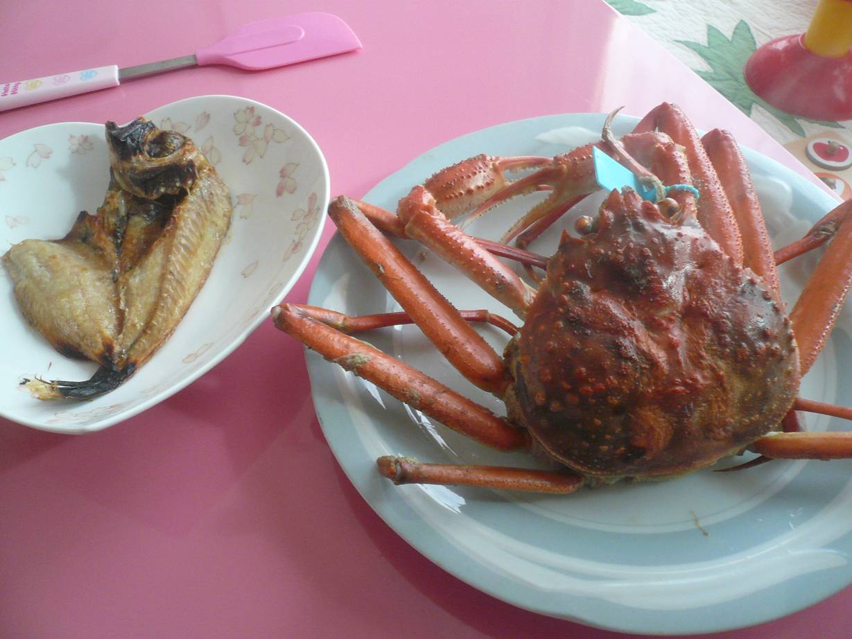 今日のランチは石川の友達から送っていただいた蟹と干物。