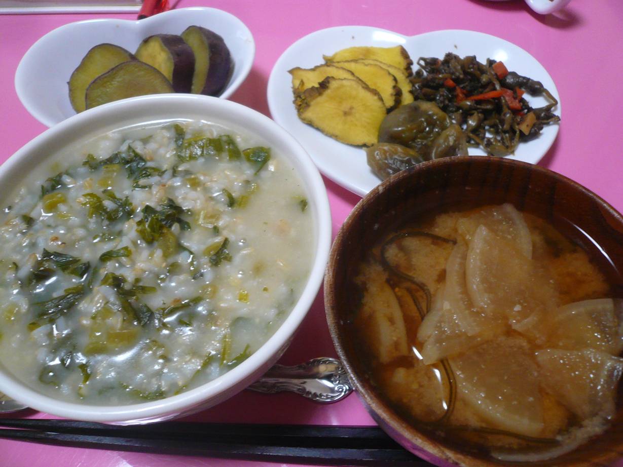 なんて思っていたら大根の葉の粥が出てきた。