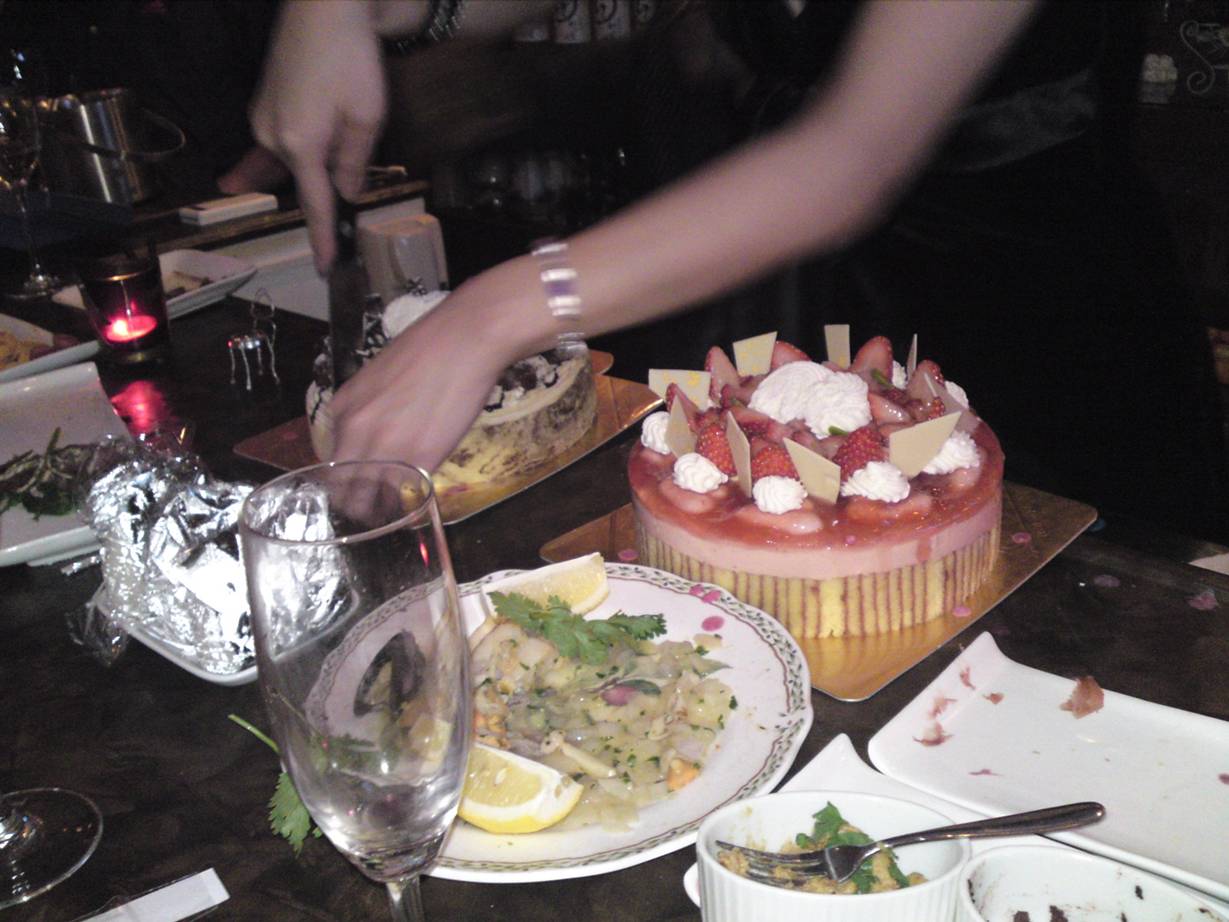 幹事の方が用意してくれたケーキを食べながらお酒をつまむ。