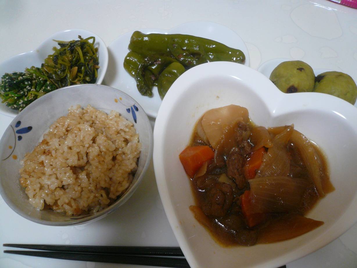 ってことで夕飯も玄米とサツマイモ。