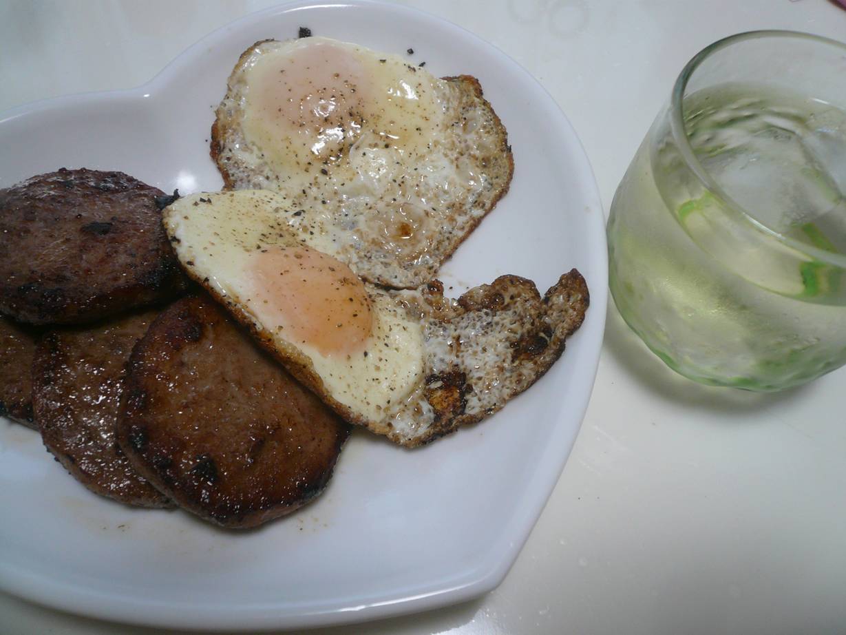 ってことで目玉焼きと焼酎を頂きました。