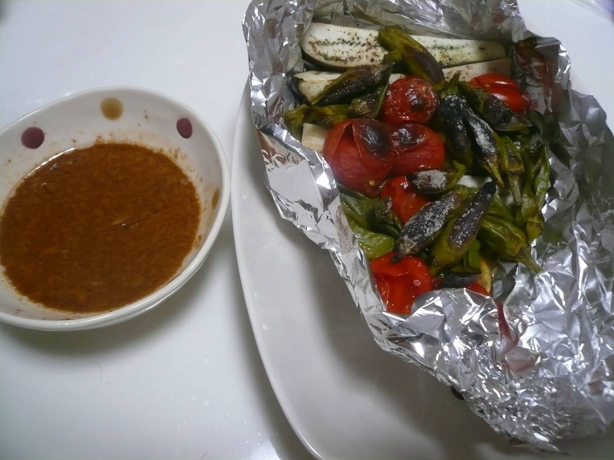 味付けは塩コショウに、胡麻醤油だれを少しつけて。