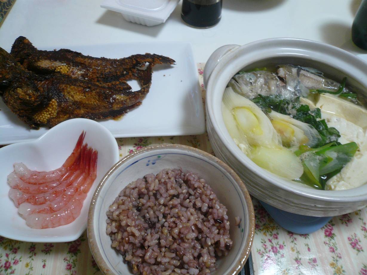 海老は甘エビを昨日刺身で食べ、今日は殻を味噌汁に。