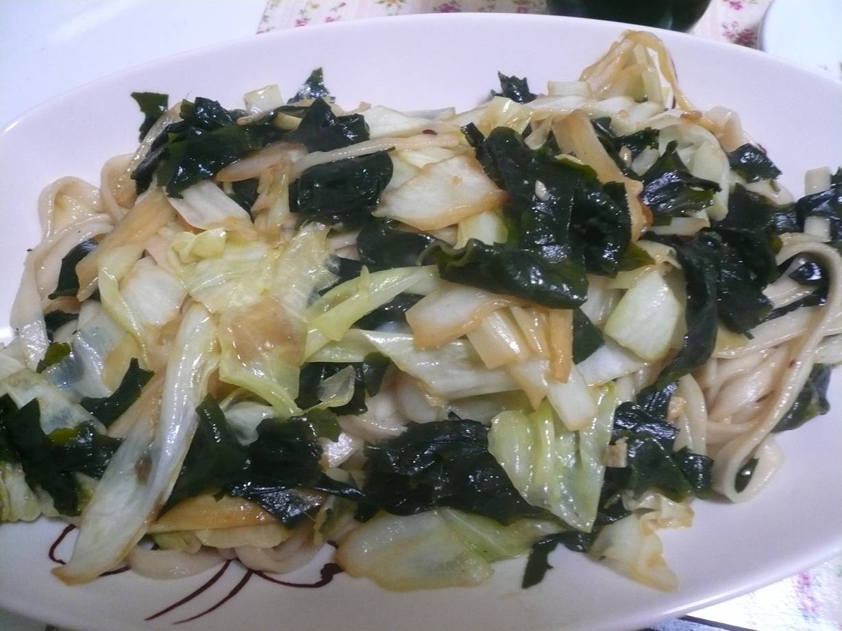 さて広島最後の食事はわたくしお手製の焼きうどん。