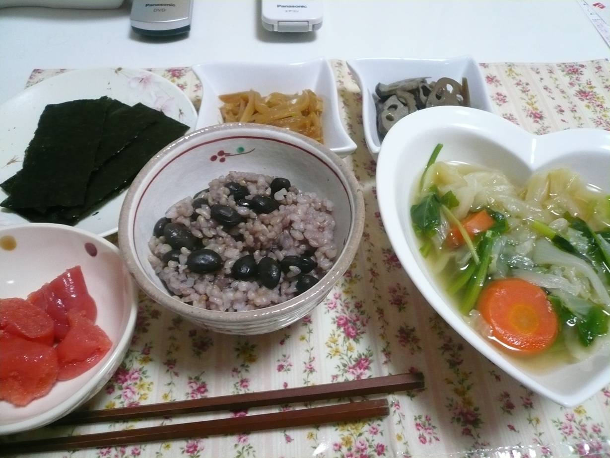 白飯が無かったので豆ご飯(冷凍)で。