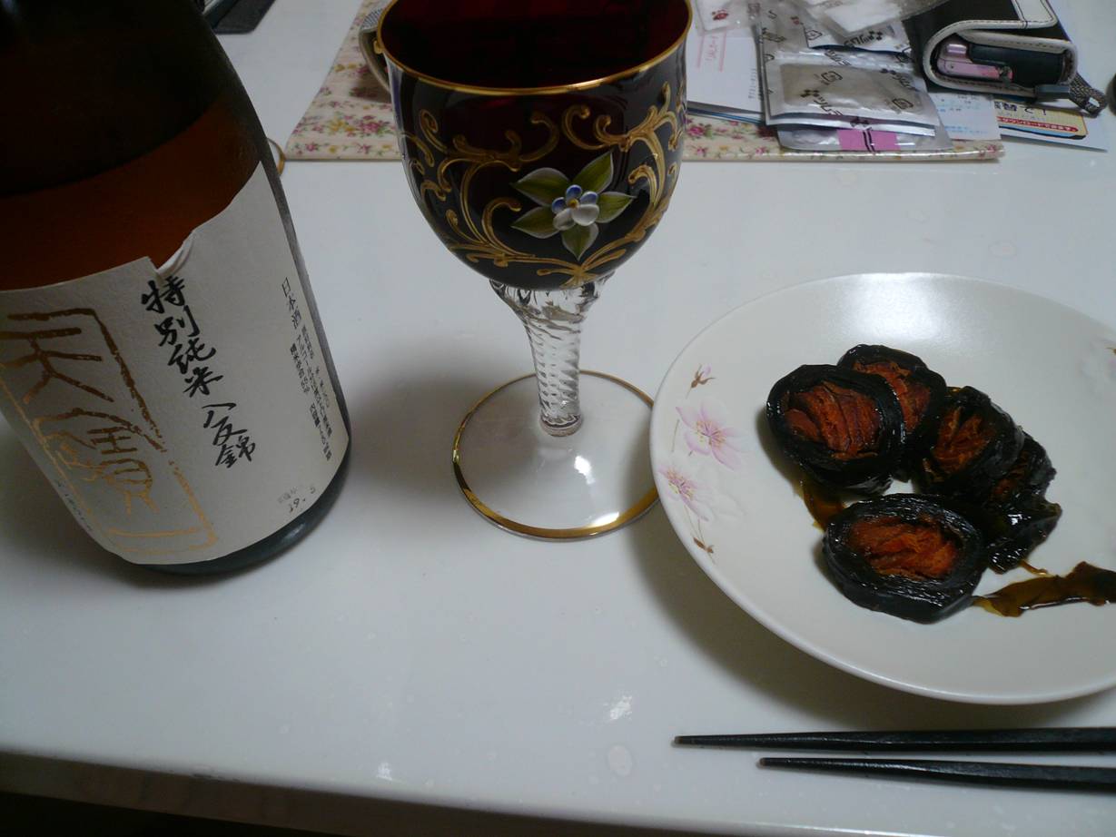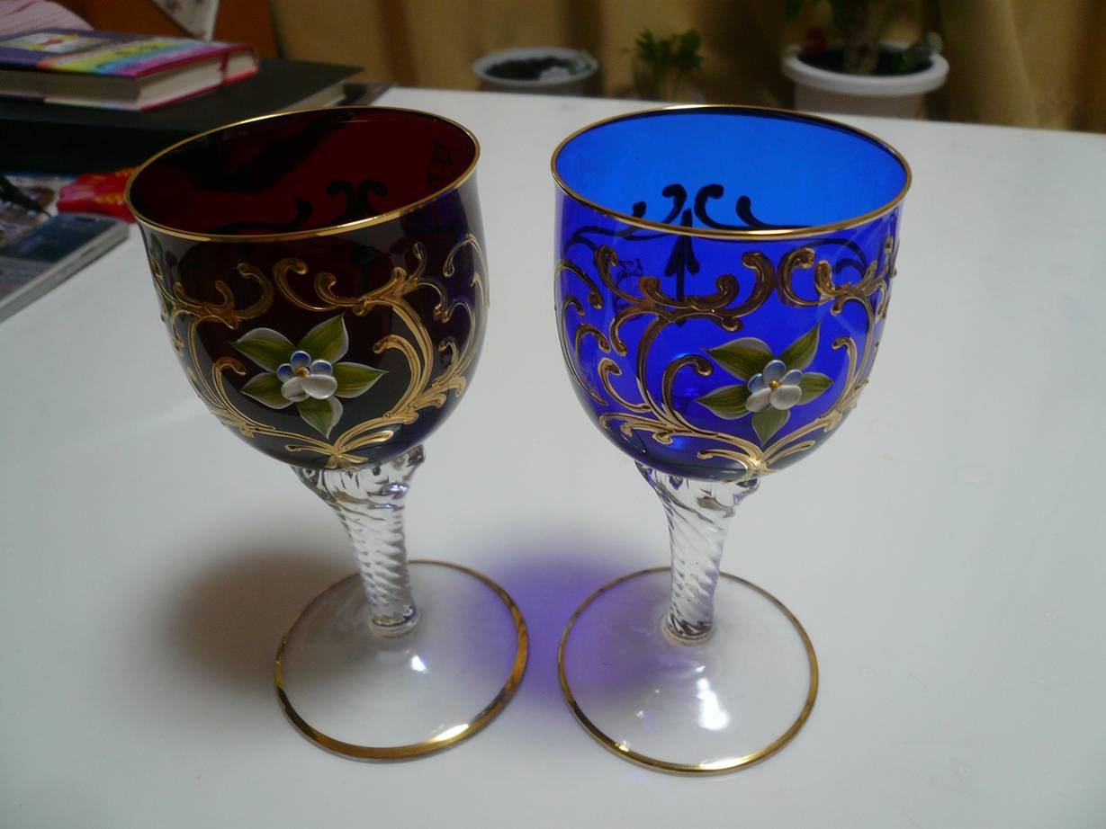 光の加減でこんな感じだけど赤いグラスで呑んでみたり青いグラスで飲んでみたり・・・。