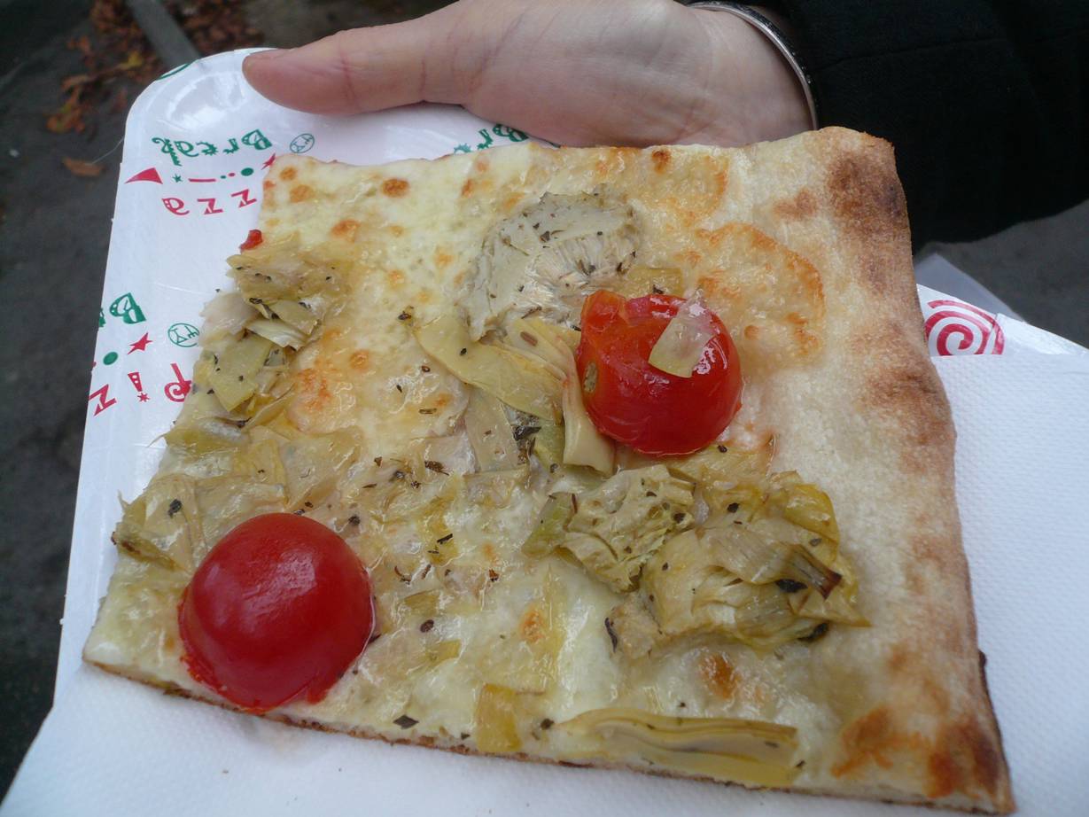 が入ったピザを紹介してもらった。お互いに「なんだかベジタリアンみたいですね」なんて笑いながらチョイス。