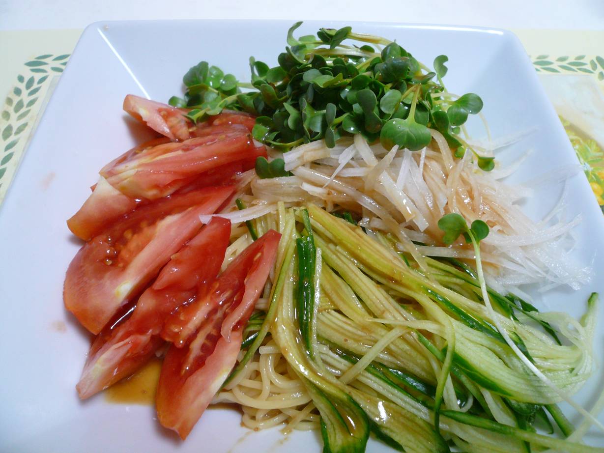 具は大根・貝割れ・きゅうり・トマト。