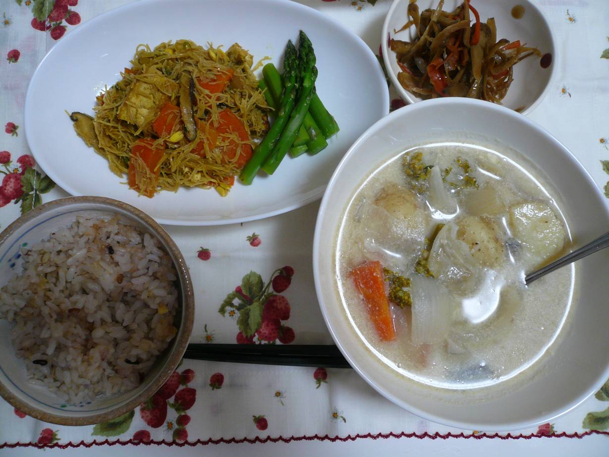今日の夕飯は根菜汁。