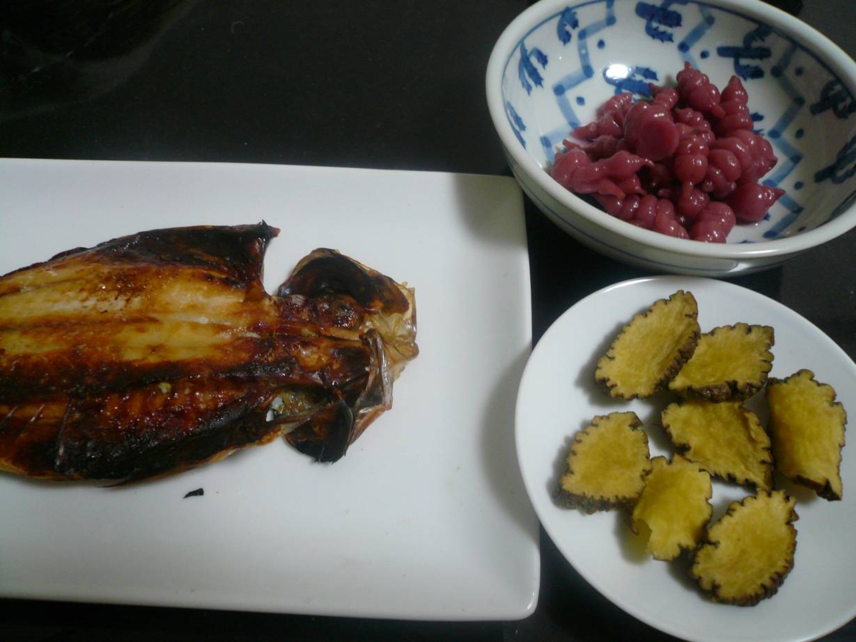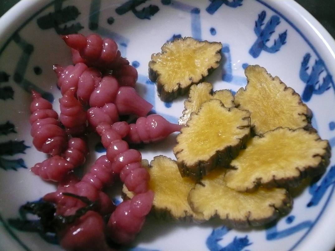 どうも食べたことのない感じの歯ごたえと梅紫蘇の酸味がたまらないなぁ。