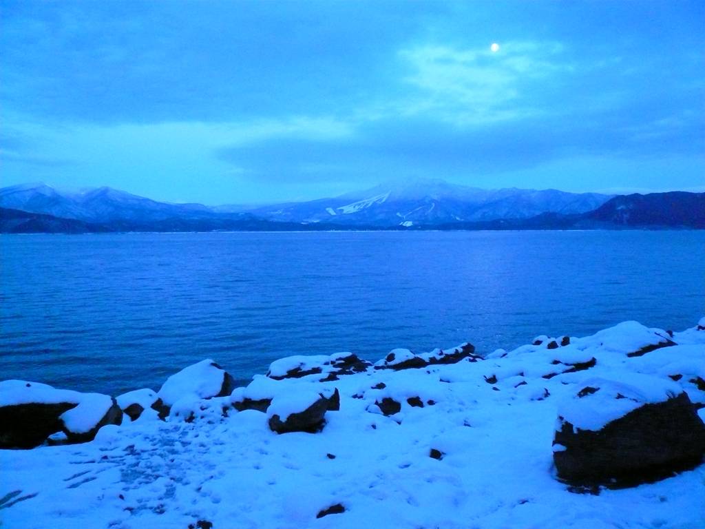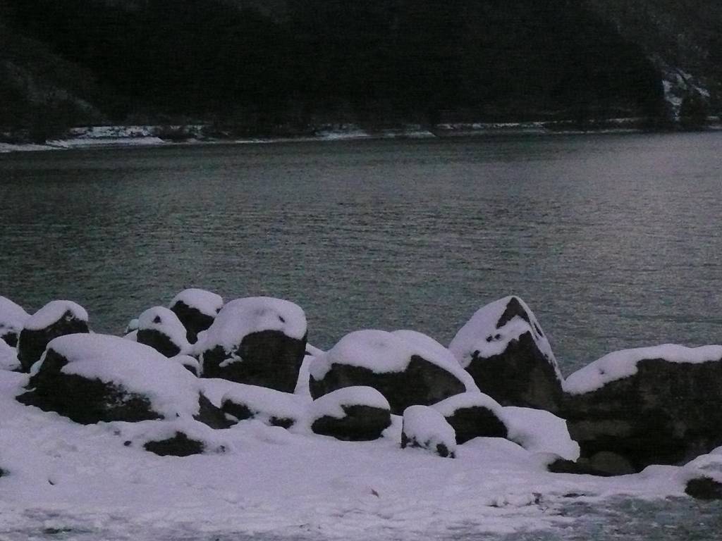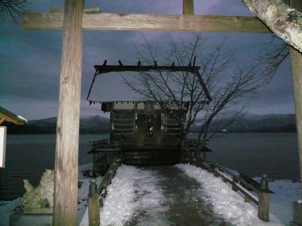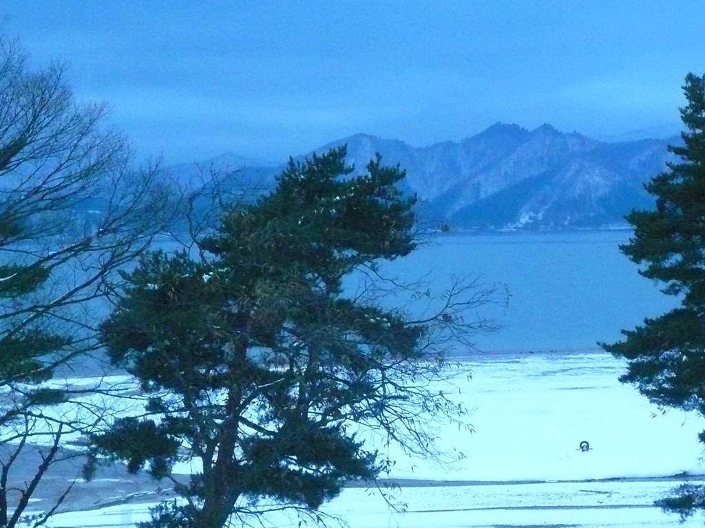 湖は雪化粧。