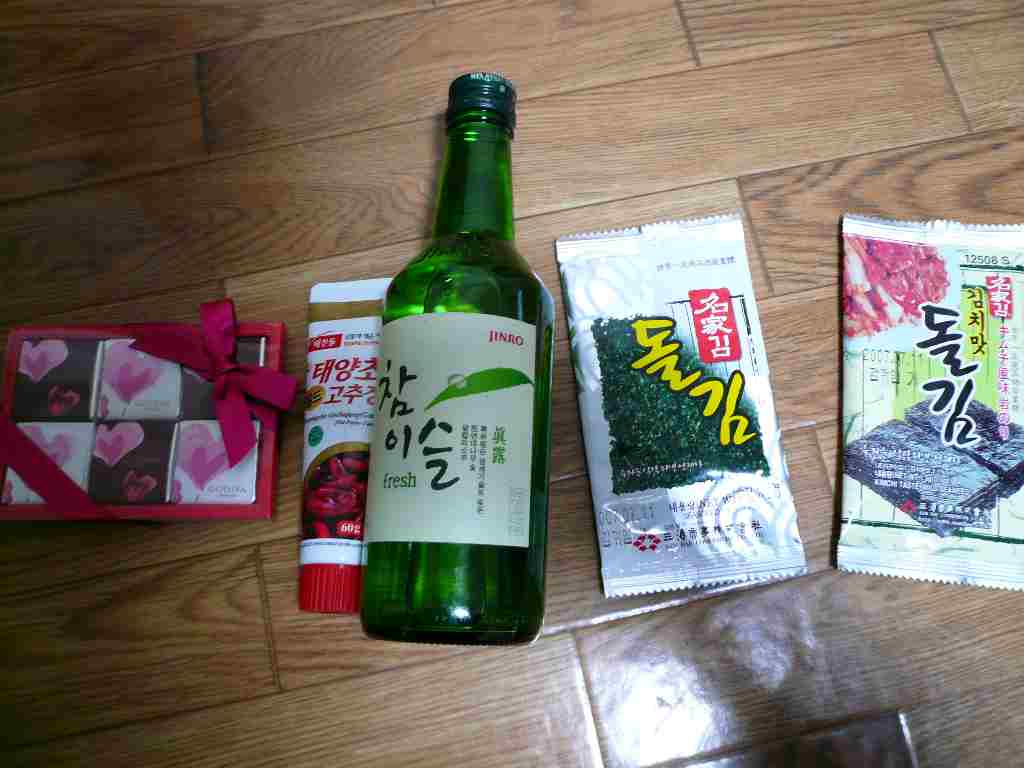 韓国焼酎で呑んだくれて、韓国のりでさらに呑み倒し、チョコレートで〆てくれとのことだろうか?