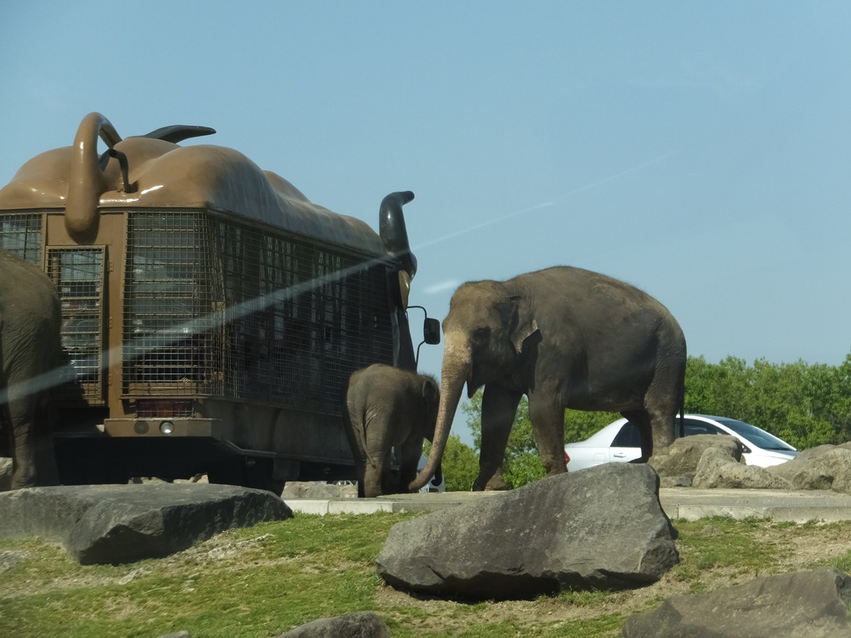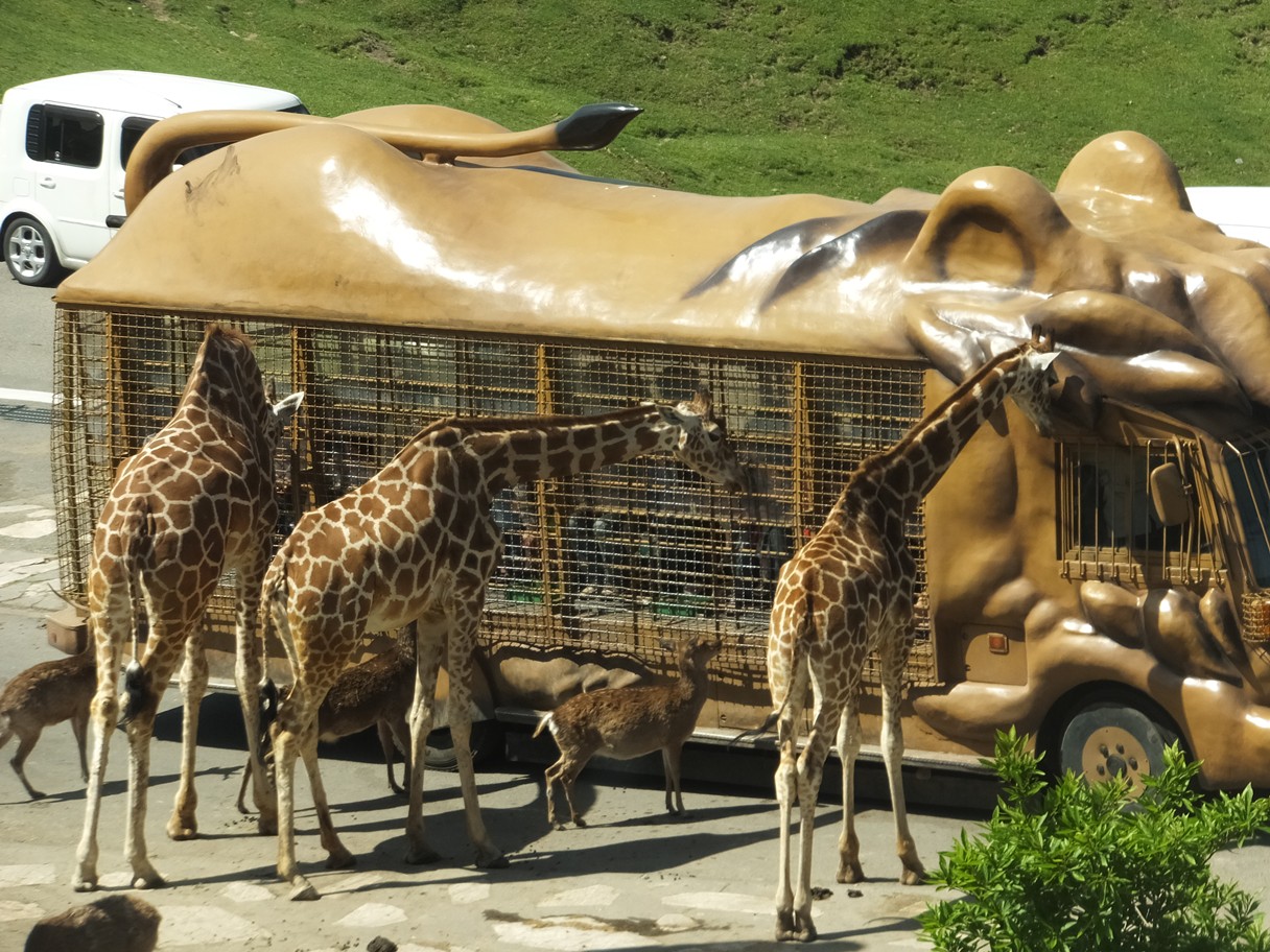 車が汚れるを恐れて、動物エリアはバスを使おうと思ったのですが。