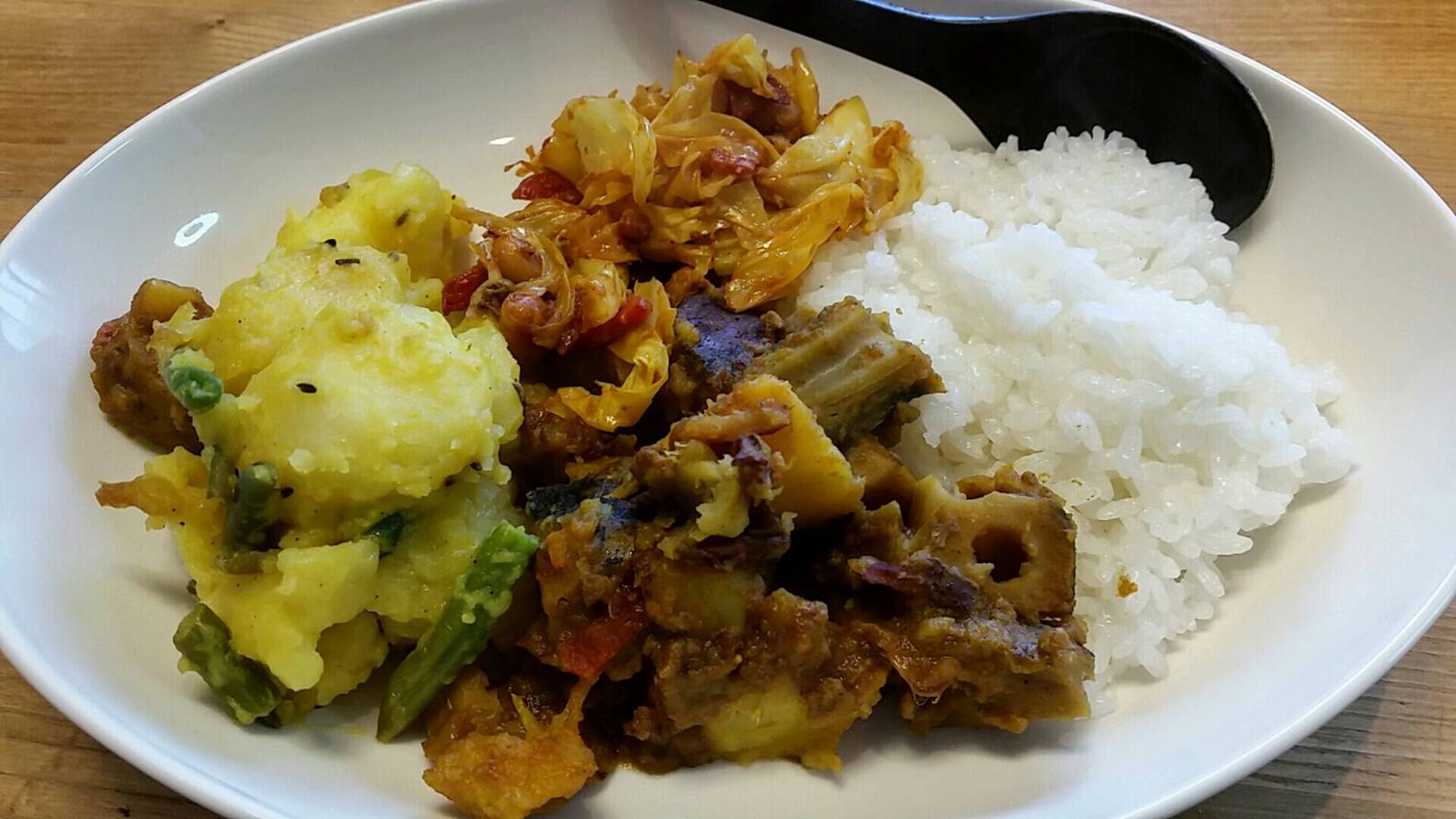 今回もほとんど野菜だけのカレーを3種なのに旨かった。