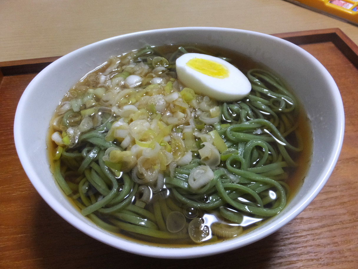 モロヘイヤを繋ぎに使った麺。