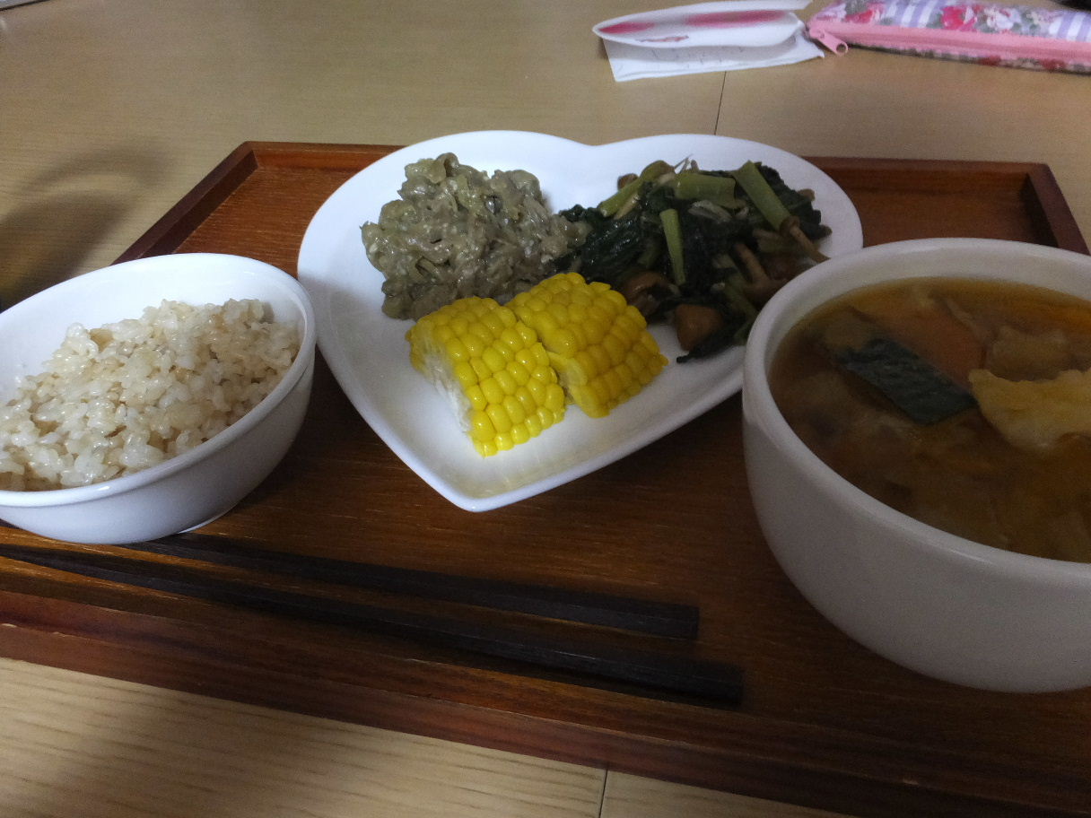 さて夕飯は完全に最後になりそうな夏野菜、トウモロコシでした。