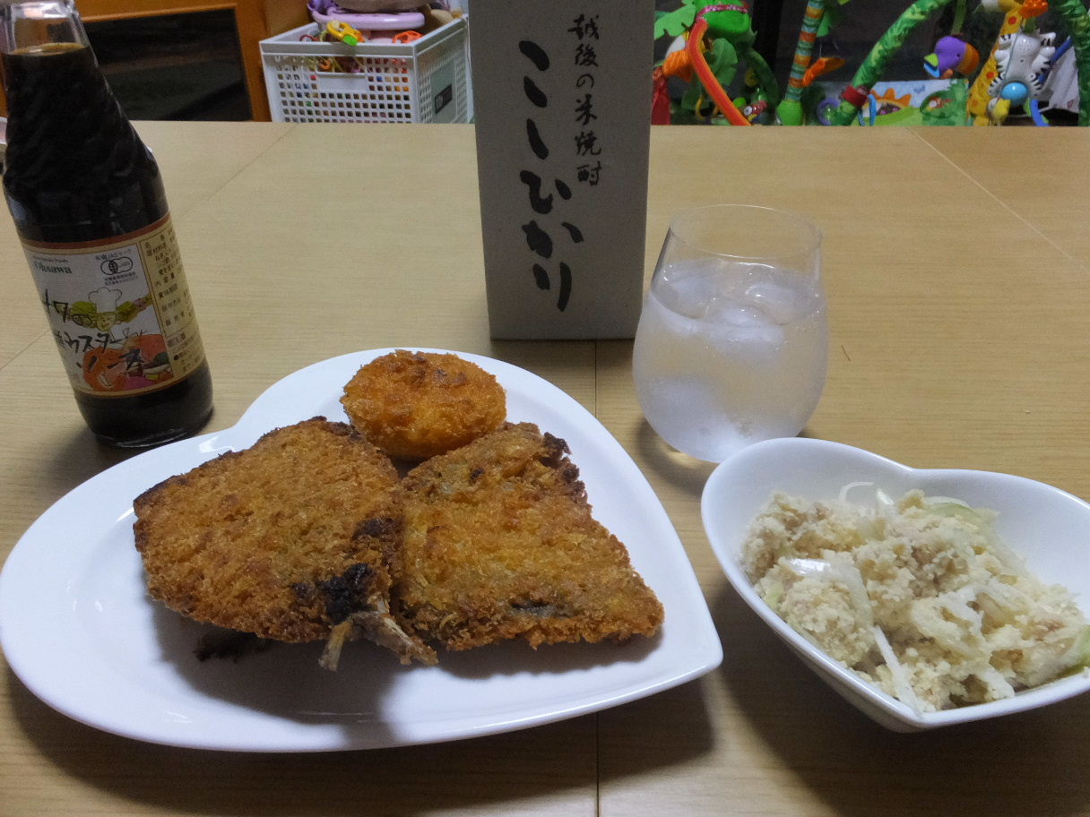 揚げ物お総菜屋さんで買ったイワシと鯵のフライと。