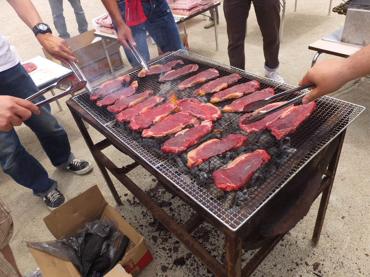 オージービーフや地鶏、豚肉、焼きそばなどを頑張る。