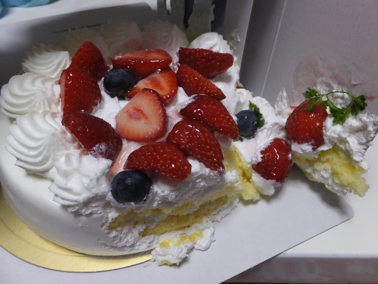 とりあえずホールケーキを買ってあげて家路に。