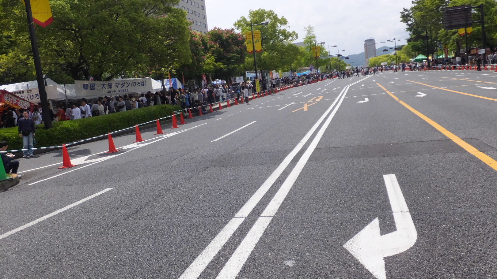 その中で、空いている場所を探すと歩行者天国になっているところが。