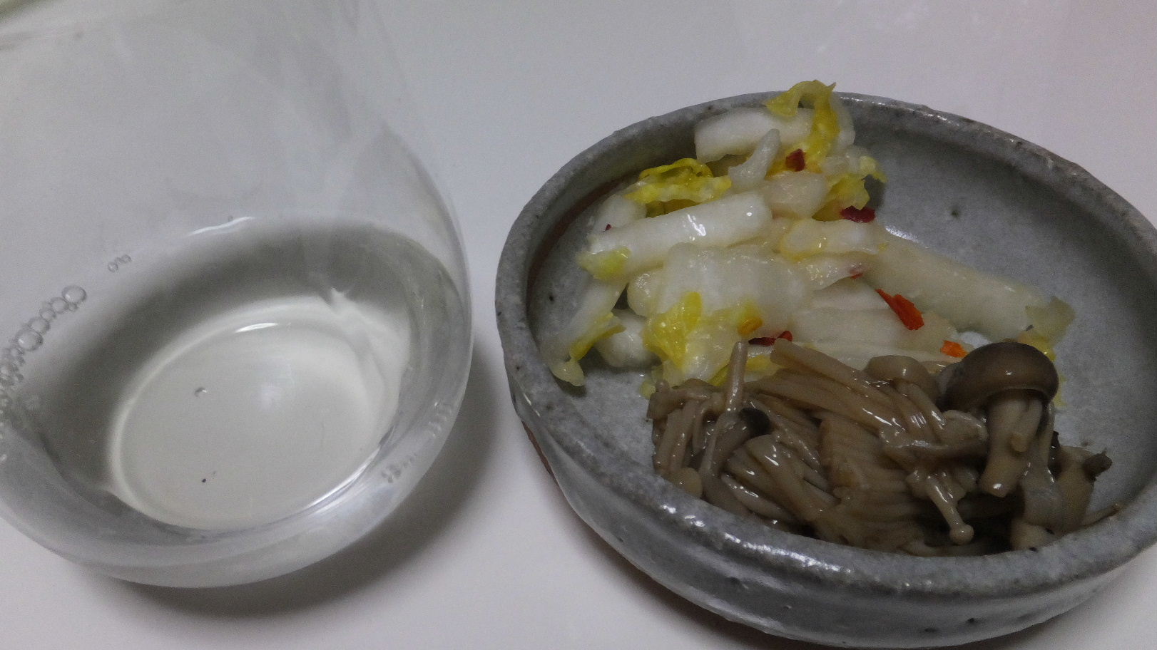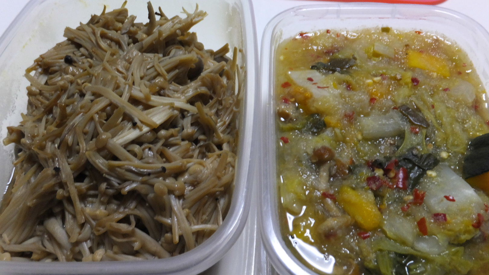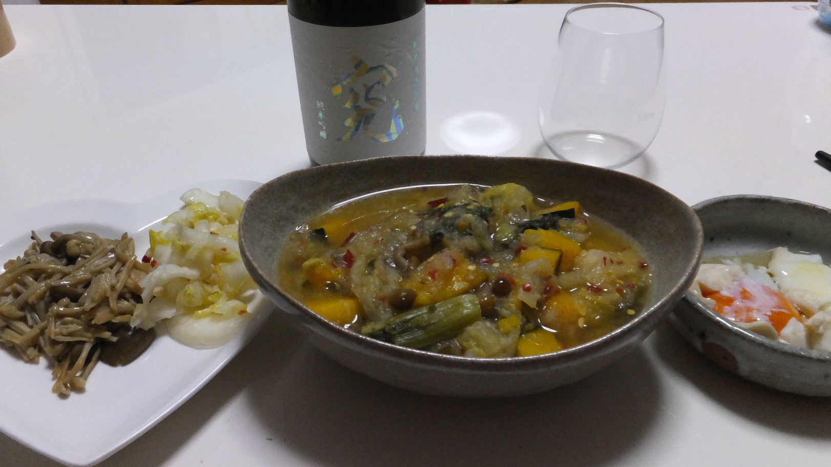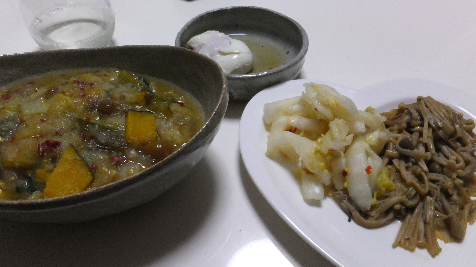 野菜煮込みになめ茸に白菜の麹漬けに卵。