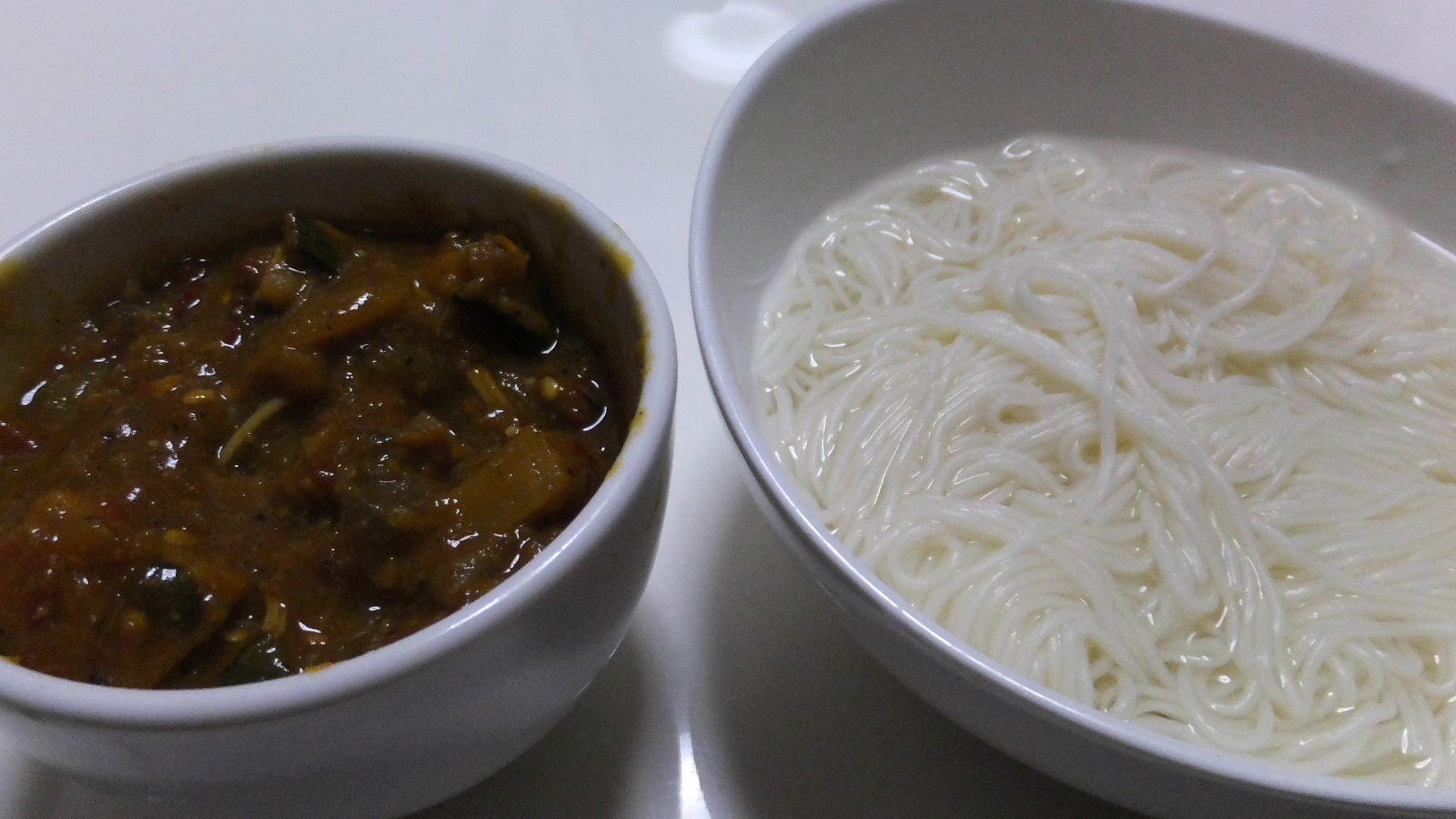 夕飯は野菜たっぷりカレーがが少しだけ残っていたのでつけ麺風。