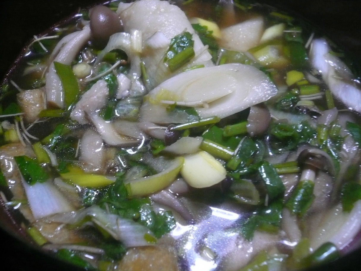 キノコとセリがたっぷり入った鍋。