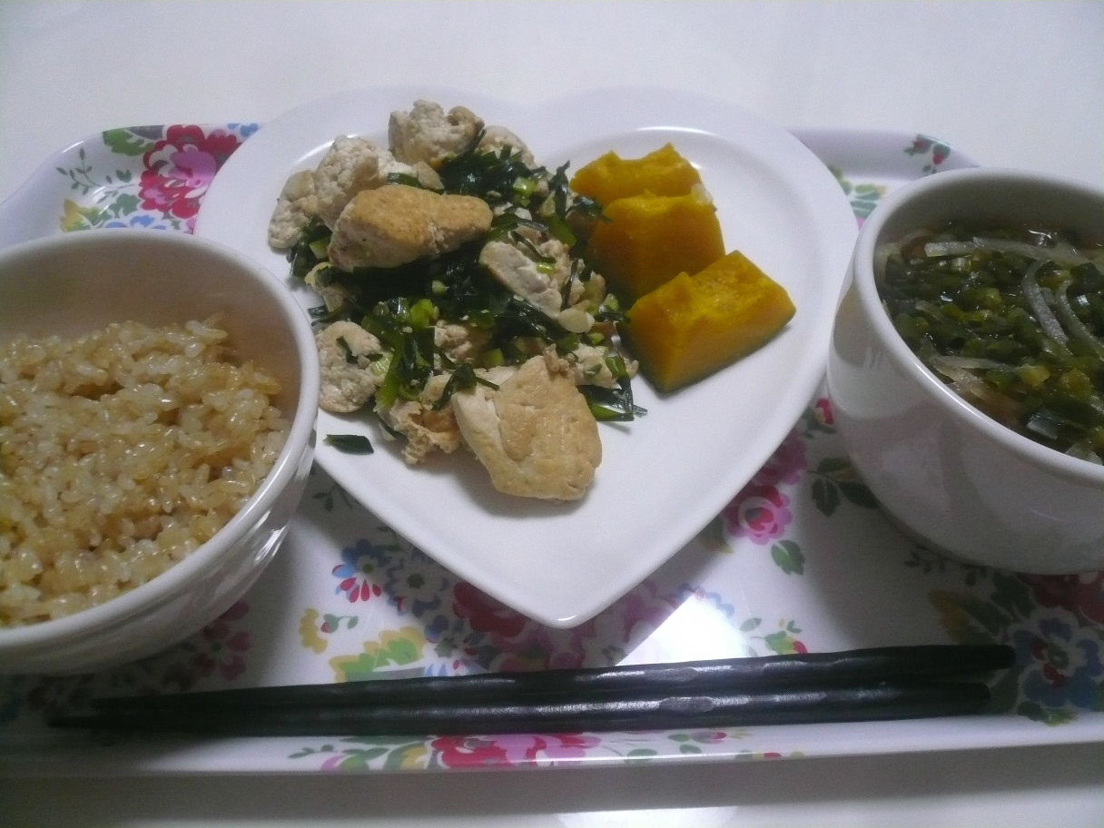 大根がたっぷり入った味噌汁(溢れそうなくらい)と豆腐とニラの炒め物も旨かった。